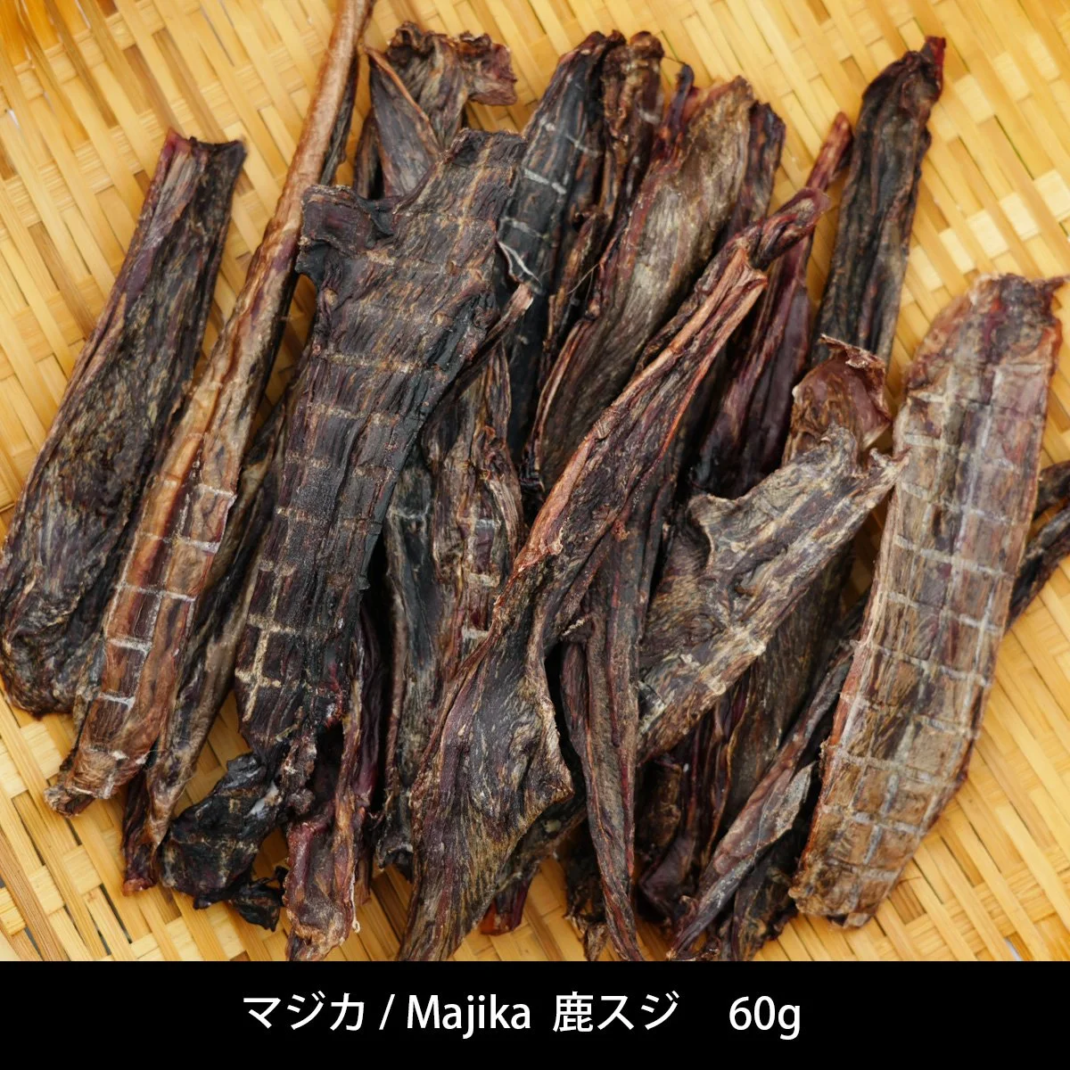 鹿のウデやスネなど、スジが入った部分を集めました。スライスよりも噛みごたえがあり長持ちするので楽しめます。