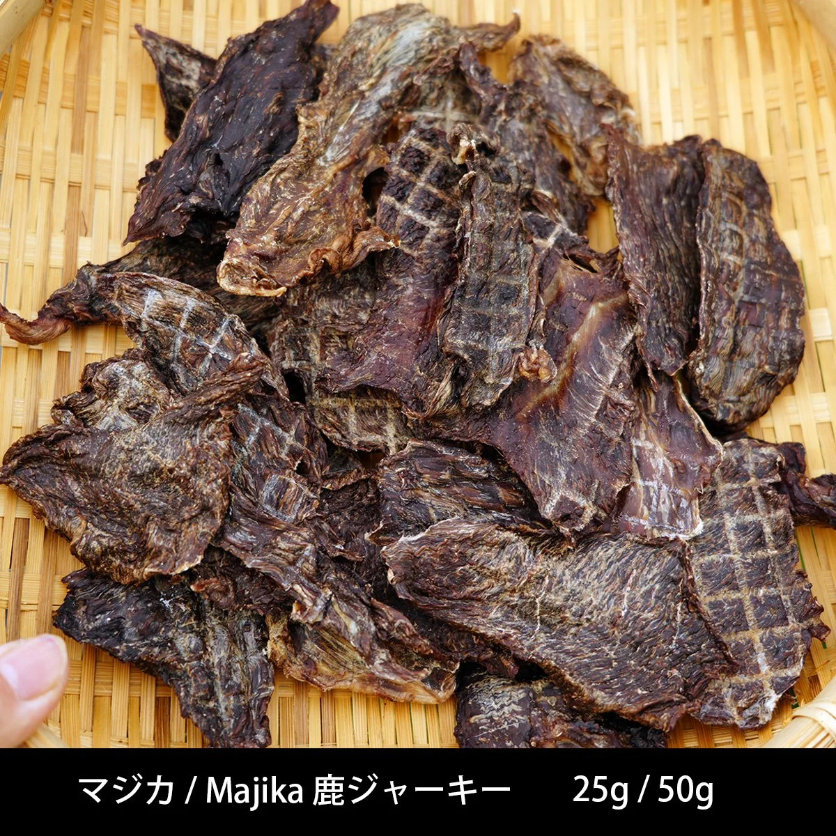 数量限定、まずはお試しセットをどうぞ。鹿肉ジャーキー 50g / 鹿スジ 60g / 鹿の内臓ペースト 15g×3本
